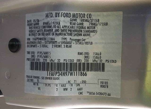 VIN: 1FAFP34N97W111866