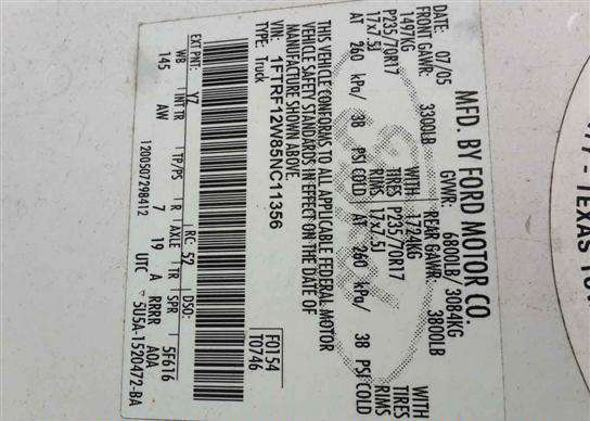 VIN: 1FTRF12W85NC11356