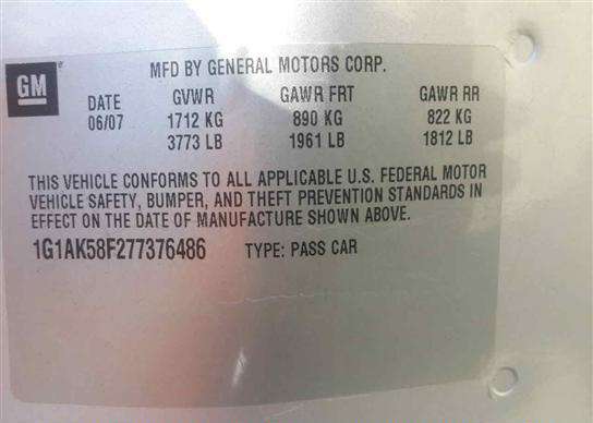 VIN: 1G1AK58F277376486