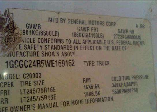 VIN: 1GCGC24R5WE169162