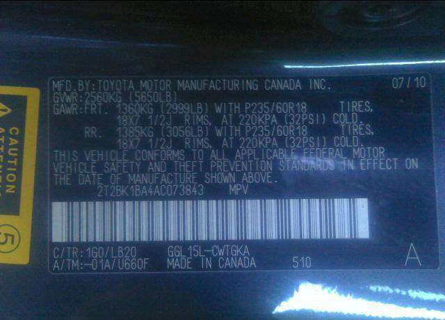 VIN: 2T2BK1BA4AC073843