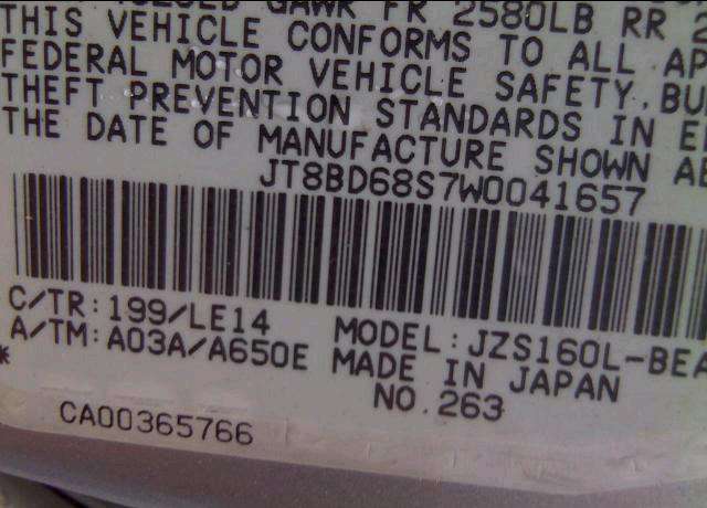 VIN: JT8BD68S7W0041657