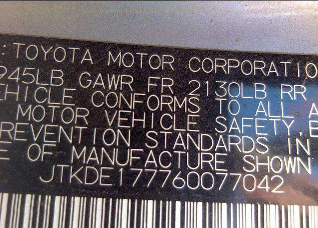 VIN: JTKDE177760077042