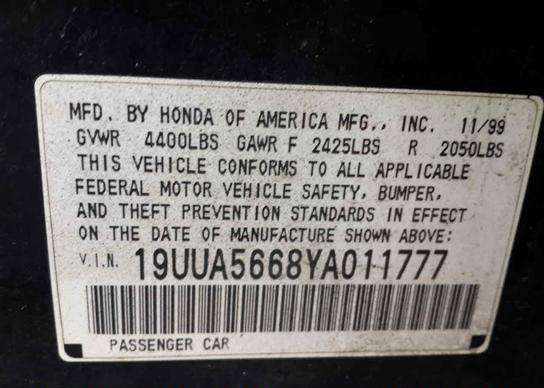 VIN: 19UUA5668YA011777