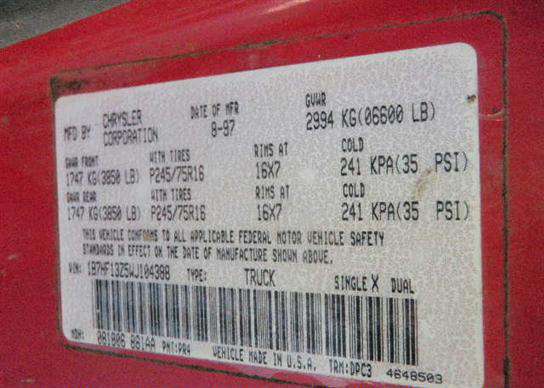 VIN: 1B7HF13Z5WJ104388