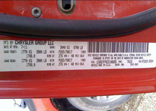 VIN: 1C6RD7FP6CS106655