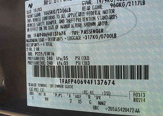 VIN: 1FAFP40694F137674