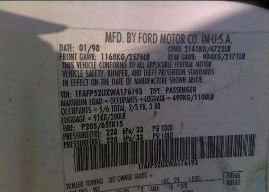VIN: 1FAFP52UXWA176193