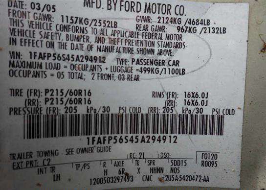 VIN: 1FAFP56S45A294912