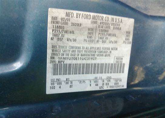 VIN: 1FMYU70E11UC31927