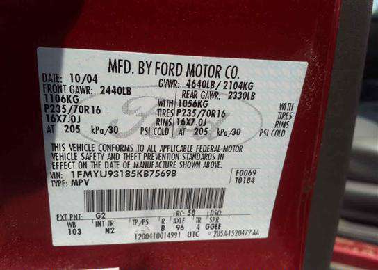 VIN: 1FMYU93185KB75698