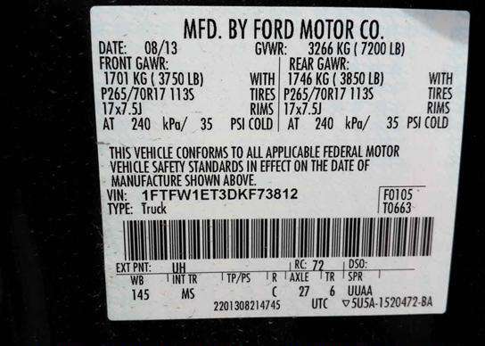 VIN: 1FTFW1ET3DKF73812