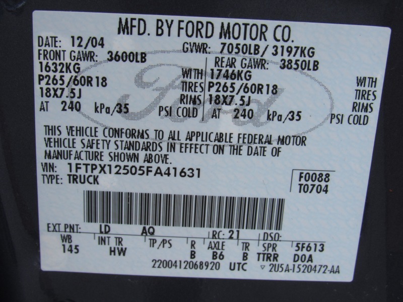 VIN: 1FTPX12505FA41631