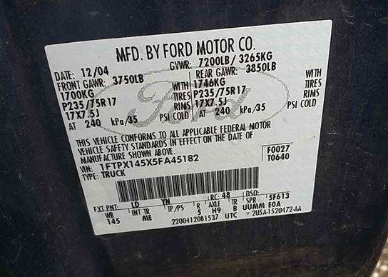 VIN: 1FTPX145X5FA45182