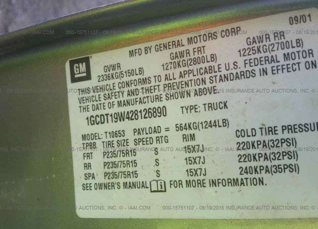 VIN: 1GCDT19W428126890