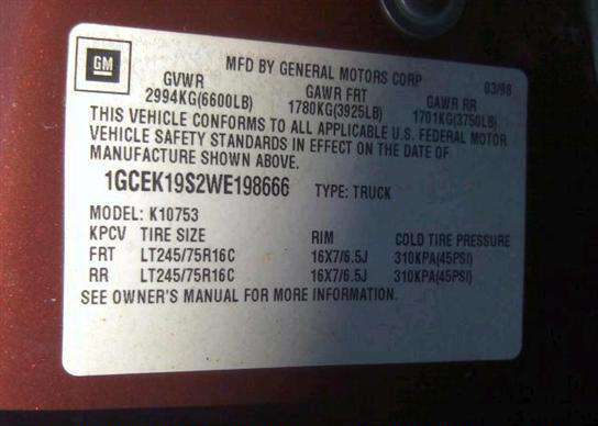 VIN: 1GCEK19S2WE198666