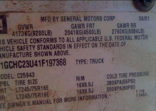VIN: 1GCHC23U41F197368