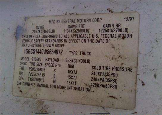 VIN: 1GGCS1440W8654872