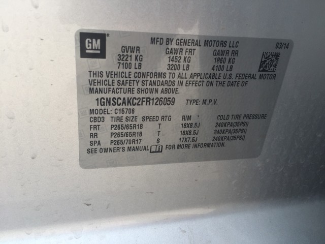 VIN: 1GNSCAKC2FR126059