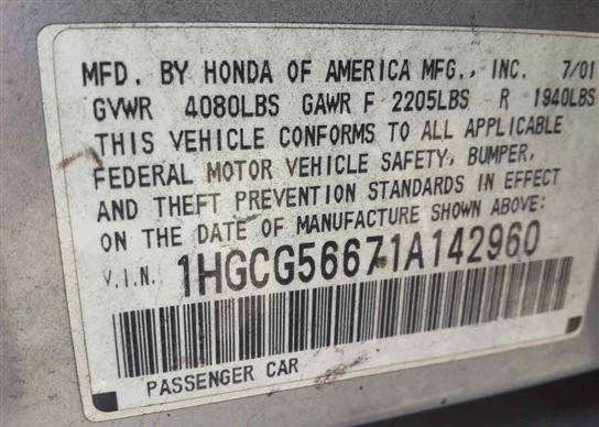 VIN: 1HGCG56671A142960