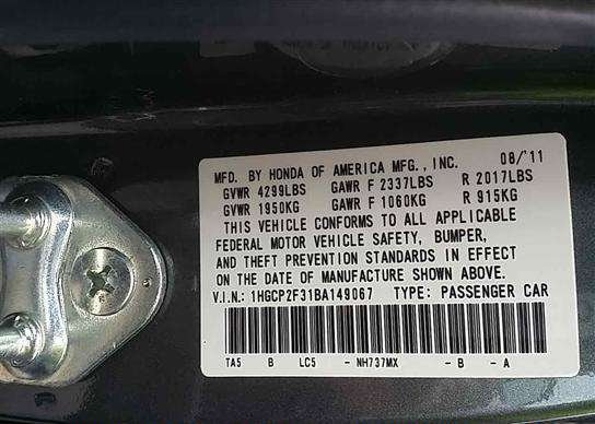 VIN: 1HGCP2F31BA149067
