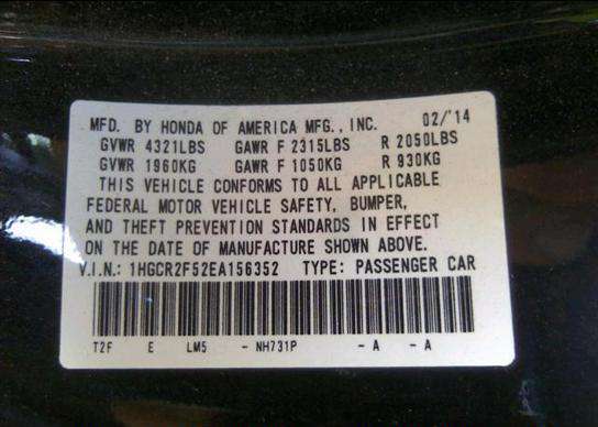 VIN: 1HGCR2F52EA156352