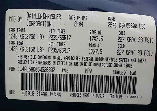 VIN: 1J4GL58K05W526832