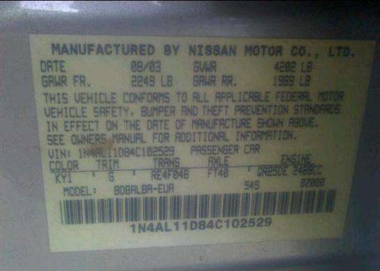 VIN: 1N4AL11D84C102529
