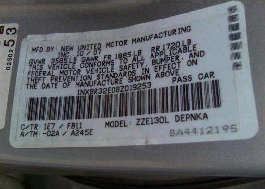 VIN: 1NXBR32E08Z019253