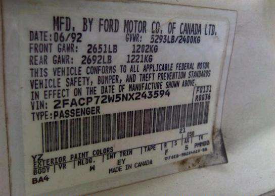 VIN: 2FACP72W5NX243594
