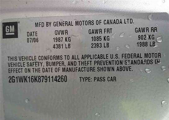 VIN: 2G1WK16K879114260