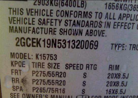 VIN: 2GCEK19N531320069
