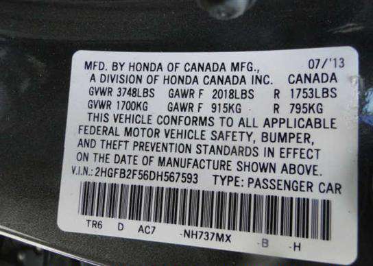 VIN: 2HGFB2F56DH567593