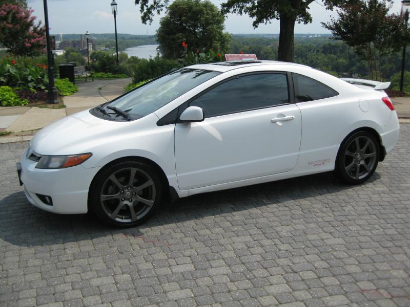 2006 Honda Civic SI Coupe WHITE TRIMMED IN BLACK CLOTH INTERIOR, 4 cylinder, AUTOMATIC, vtec, honda factory wheels, SUNROOF, 3 owner, NO ACCIDENT, autocheck certified, full power, very clean inside & out, COME BY TO SEE AND DRIVE! #honda #si #vtec #rvacarsforsale Performance 1,998 cc 2 liters in-line 4 front engine with 81 mm bore, 87.3 mm stroke, 11 compression ratio, double overhead cam, variable valve timing/camshaft and four valves per cylinder Premium unleaded fuel 91 Multi-point injection fuel system 13.2 gallon main premium unleaded fuel tank Power: 147 kW , 197 HP SAE @ 7,800 rpm, 139 ft lb , 174 Nm @ 6,100 rpm Handling Four disc brakes including two ventilated discs Electronic brake distribution Immobilizer Front limited slip differential Strut front suspension independent with stabilizer bar and coil springs , wishbone rear suspension independent with stabilizer bar and coil springs Price does not include $99 processing fee
