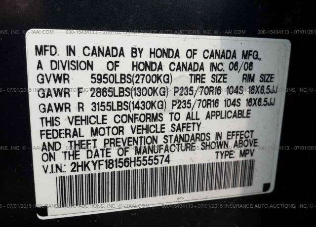 VIN: 2HKYF18156H555574