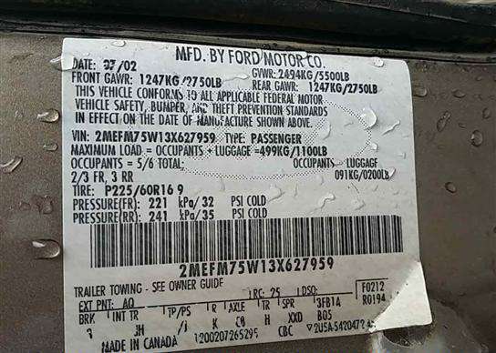VIN: 2MEFM75W13X627959
