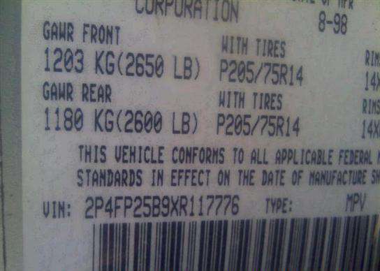 VIN: 2P4FP25B9XR117776