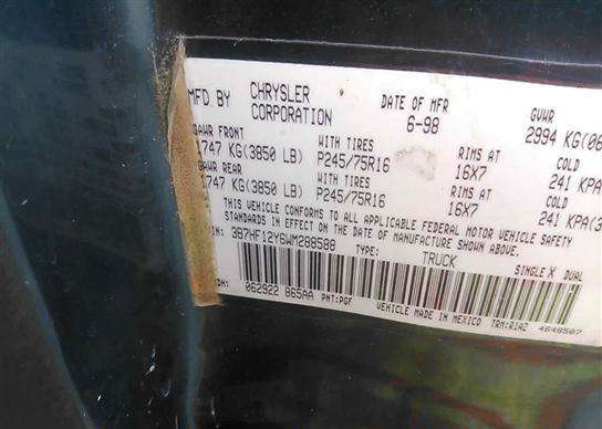VIN: 3B7HF12Y6WM288588