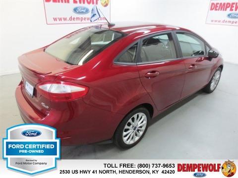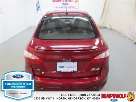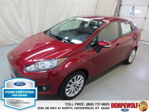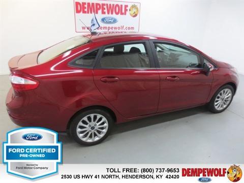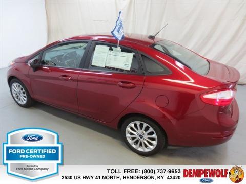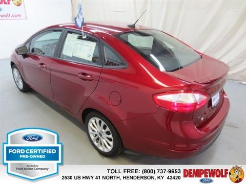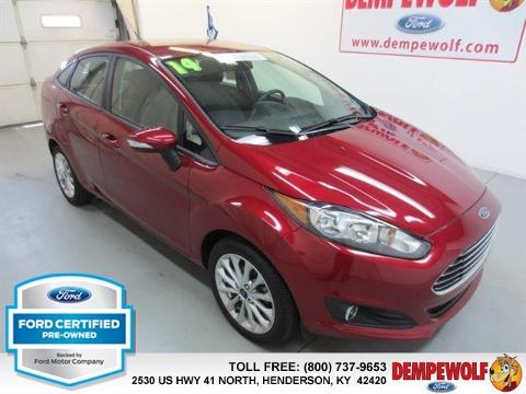 Check out this certified 2014 Ford Fiesta SE. It has a Automatic transmission and a Regular Unleaded I-4 1.6 L/97 engine. This Fiesta features the following options: Transmission: 5-Speed Manual, 5 Person Seating Capacity, Tailgate/Rear Door Lock Included w/Power Door Locks, Airbag Occupancy Sensor, Manual air conditioning, Steel Spare Wheel, Mykey System -inc: Top Speed Limiter, Audio Volume Limiter, Early Low Fuel Warning, Programmable Sound Chimes and Beltminder w/Audio Mute, Manual Tilt/Telescoping Steering Column, Body-colored door handles, Curtain 1st And 2nd Row Airbags. Stop by and visit us at our dealership, 2530 US 41 North, Henderson, KY 42420.