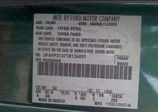 VIN: 3FAFP31371R136097