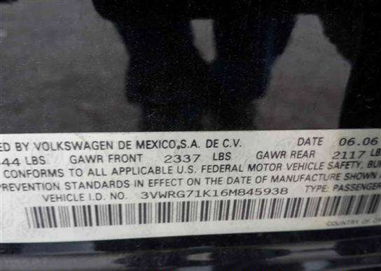 VIN: 3VWRG71K16M845938
