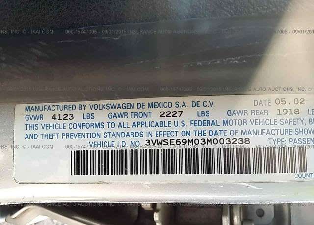 VIN: 3VWSE69M03M003238
