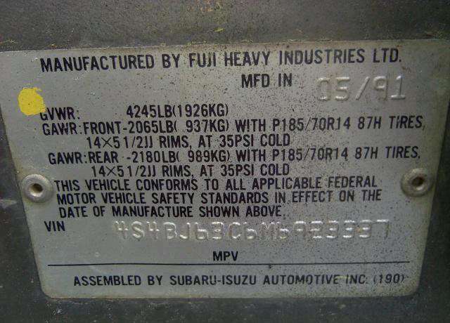 VIN: 4S4BJ63C6M6923337