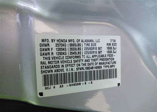 VIN: 5FNRL18604B140909