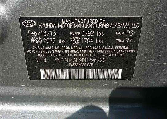 VIN: 5NPDH4AE9DH296222