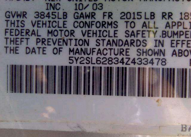 VIN: 5Y2SL62834Z433478