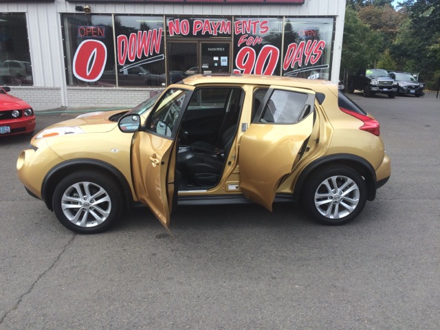 Nissan's five-seat Juke small crossover is about 20 inches shorter than the Rogue, but it packs a more powerful engine and a sophisticated available all-wheel-drive system that together give the Juke a decidedly sporty bearing. The Juke comes with 17-inch aluminum wheels, Body-colored side mirrors, Hidden rear door handles, and a power tilt/sliding moonroof. The interior includes: 60/40 split folding backseat, CD stereo with steering-wheel controls and iPod connectivity, premium Rockford Fosgate audio, Bluetooth connectivity, leather upholstery, heated front seats, backup camera, push-button start, and navigation system with a 5-inch touch-screen. The Juke is powered by a 188-horsepower, turbocharged 1.6-liter four-cylinder engine, Standard continuously variable automatic transmission, Integrated Control system, which tailors the response of the gas pedal, continuously variable automatic transmission and steering based on three selectable modes: normal, Sport and Eco, performance-oriented all-wheel-drive system can evenly split engine torque between the front and rear wheels and also transfer torque between the rear wheels, All-wheel-drive models get a multilink rear suspension in place of the front-drive models' torsion-beam design. This Juke is still under the manufacturers warranty. Visit our dealership online to see more pictures of this vehicle or call us today to schedule your test drive.