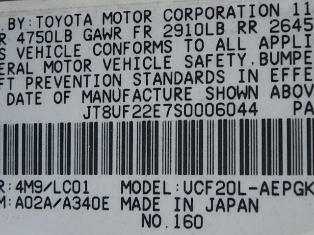 VIN: JT8UF22E7S0006044