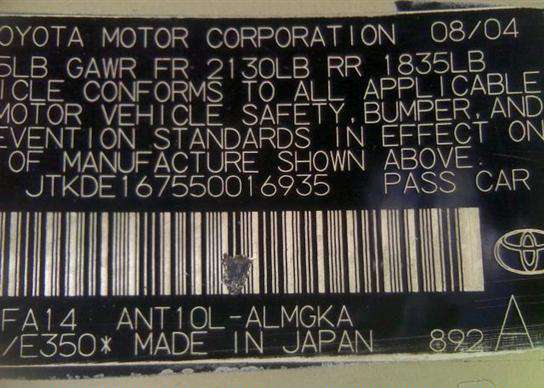 VIN: JTKDE167550016935