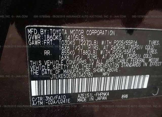 VIN: JTLKE50E081042780